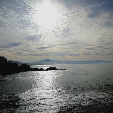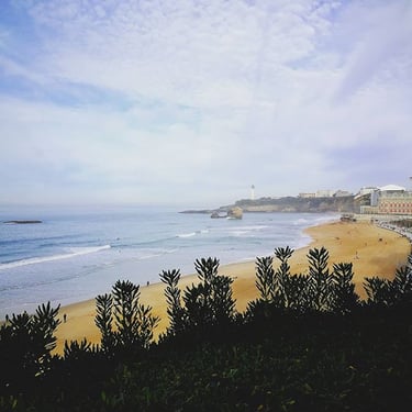 As we strolled the streets of glitz-filled Biarritz at the start of this new year 2020, Phill and I asked ourselves the same question - where are the homeless people? France, like England, is a capitalist country with its own share of inequality, though perhaps not yet quite as pronounced as in Great Britain. Unfortunately, it is now an expectation in our broken-by-capitalism so often no-longer-quite-communities that the streets of any major tourist town or city will be filled with those who've fallen on unfortunate times (or been squeezed out of the impenetrable system as it is in the UK). But in Biarritz, we saw nobody sitting on cold stone steps apart from a few chattering children chewing on churros - the Spanish and the Basque influence is of course all around this French holiday haven. Perhaps they had been pushed away from the main tourist stomping grounds? You certainly wouldn't find them adorning the designer shop doors where a pair of loafers could quite easily set a gentleman back €550, not to mention the lacy lingerie boutiques and the artists' oil paintings with hefty price tags. Art is still a big thing in Biarritz and brightly painted paintings hang in windows along the streets, dazzling onlookers with crystal blue waves, colourful contemporary surfboards standing in a row, and the famous stripy beach huts ('cabines de plage' in French) of the Grand Plage. Biarritz is undoubtedly a place with money. Palm trees frame traditional Basque house patios, and black ornate railings wrap around juliet balconies of beautifully well-kept pavilions. Teenagers' walking is done on wheels - either on scooters or on skateboards. The sea (which of course is not the sea but in fact the ocean, but for we Englanders will always be the sea because saying the ocean feels weird and somehow American) is scattered with surfers. Lying there in wait, bobbing up and down like basking sharks dotting the wave line, they cooly and collectively await the perfect wave. Like sharks with time to flitter for the perfect bite, the surfers are in no hurry, they emanate coolness, a Californianesque class of coolness.