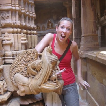 Inside was like treasure chest inside treasure chest, a Russian doll of rooms within rooms. Scratched into stone were hundreds of heads of Gods, entangled in endless arms and legs lined up in rows around cavernous corridors punctuated by light let in through perfectly precise petals of flowers carved into wooden walls. A crowned crocodile, or was it an elephant, poked out its head from the pillar, enticing Jo to put her fingers between its teeth. The temple was silently alive with the skills of its sculptors, talents long since returned to the sand and locked into the souls of their owners.