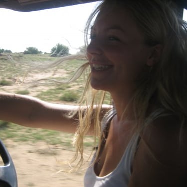 Not another being was in sight as the bike rumbled onwards, driving deeper into the desert and further and further from the fort and civilisation. Jo clung tightly to Ravi as slowly, the outline of a building began to appear in the haze. It was like she’d seen in the movies, where the characters go mad, imagining an oasis in the depths of the desert. Seeing the palm trees swaying in the breeze as the picture ripples in the roaring heat and sweat drops drip from the person’s forehead. Jo was that character. Was she imagining the picture before her? Was it wishful thinking to relieve her from the monotony and motionlessness of the sands? She was reassured that she hadn’t lost her mind when Ravi finally brought the bike to a stop and declared they’d arrived at their destination.